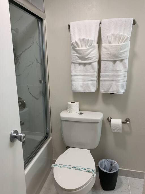 🚨 Important Information: We do NOT provide: Washcloths Salt, pepper, or oil We provide the following supplies: 2 rolls of toilet paper per bathroom 2 travel-sized soaps per bathroom 2 travel-sized shampoos per bathroom 4 garbage bags (13 gallons) 1 paper towel roll per kitchen 2 dishwasher soaps 2 washcloths per bathroom Extra linens or bath towels are available upon request for an additional fee and will be delivered the following day. Damaged or stained towels and bed linens will be charged for replacement.