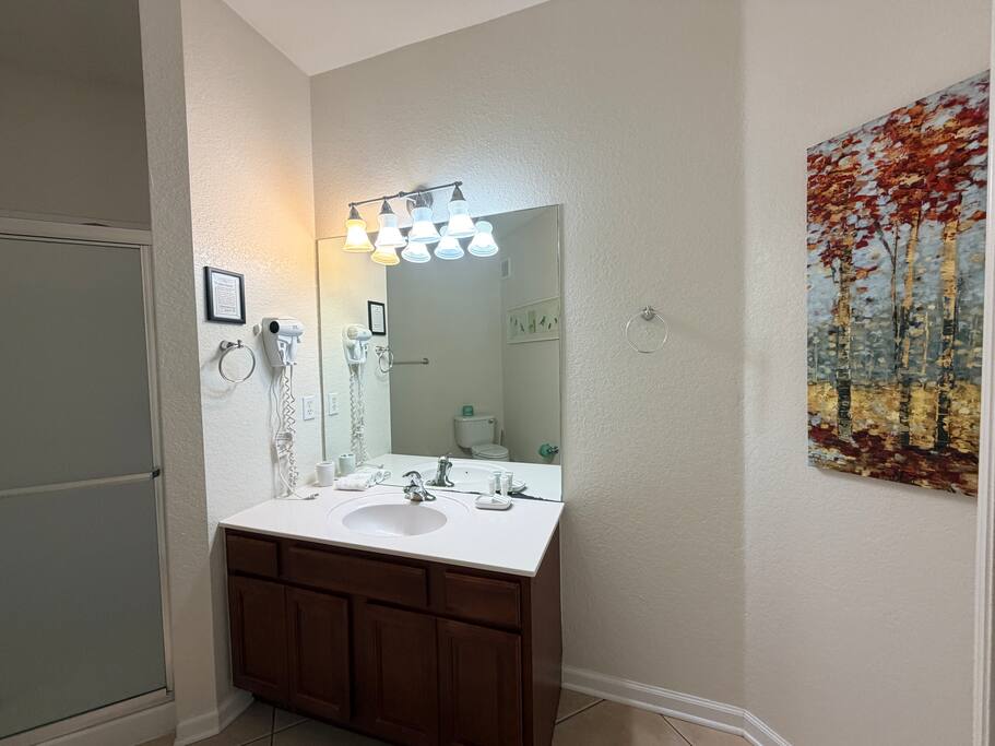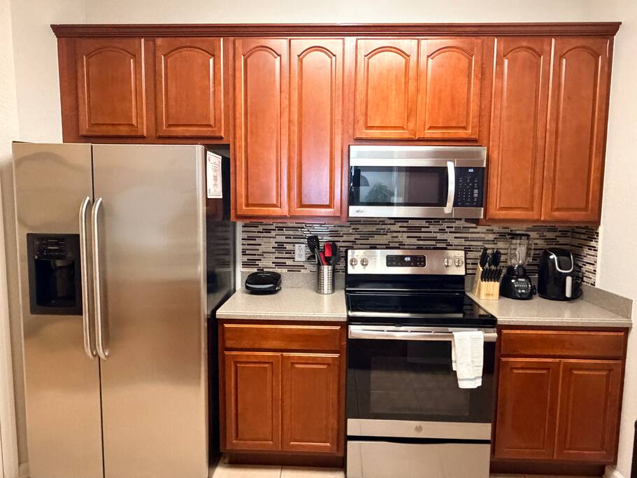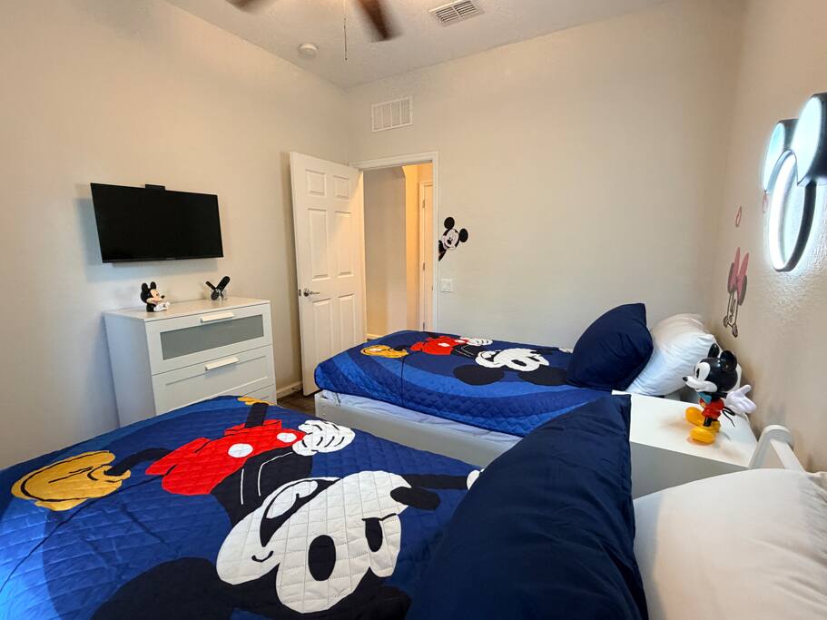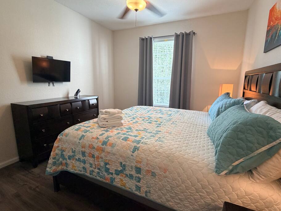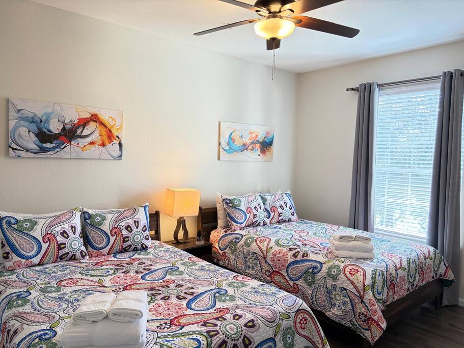 This comfortable apartment features 2 bedrooms and 2 full bathrooms, offering the ideal setup for families, couples, or friends. The master bedroom includes a Queen-size bed and a private ensuite bathroom with a refreshing shower. The second bedroom offers one Full-size bed and one Twin-size bed, perfect for flexible sleeping arrangements, and has its own bathroom with a shower/tub combo — great for relaxing after a day at the parks. Both bedrooms include Smarts TVs with Cable TV. The fully equipped kitchen includes a two-burner cooktop (no oven), microwave, refrigerator, toaster, blender, and all the cookware, utensils, and dishware you need to prepare meals comfortably during your stay. For added convenience, washer and dryer facilities are located on the 3rd and 4th floors of the same building. Each laundry cycle costs $2.50. You’ll also enjoy free parking right outside the building, plus access to ice machines and vending machines available in every tower. This apartment offers everything you need for a practical, relaxing, and memorable stay in Orlando!