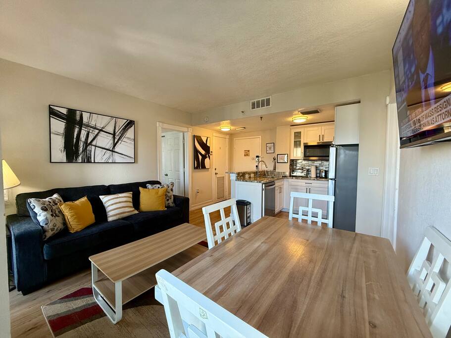 The apartment is perfectly located, surrounded by countless restaurants and just moments from top International Drive attractions such as Madame Tussauds, SEA LIFE Aquarium, and the Orlando Eye. You’ll also be within easy reach of Orlando’s world-famous theme parks: Walt Disney World’s 4 parks – only an 18-minute drive Universal Studios, Epic Universe, and Volcano Bay – about 8 minutes away SeaWorld – just 10 minutes away Disney Springs – only 15 minutes away If shopping is on your list, you’ll love the proximity to the Mall at Millenia (9 minutes) and the Premium Outlets (5 minutes). Traveling without a car? No problem — Uber and taxis are easily available and offer a convenient way to reach all major attractions.