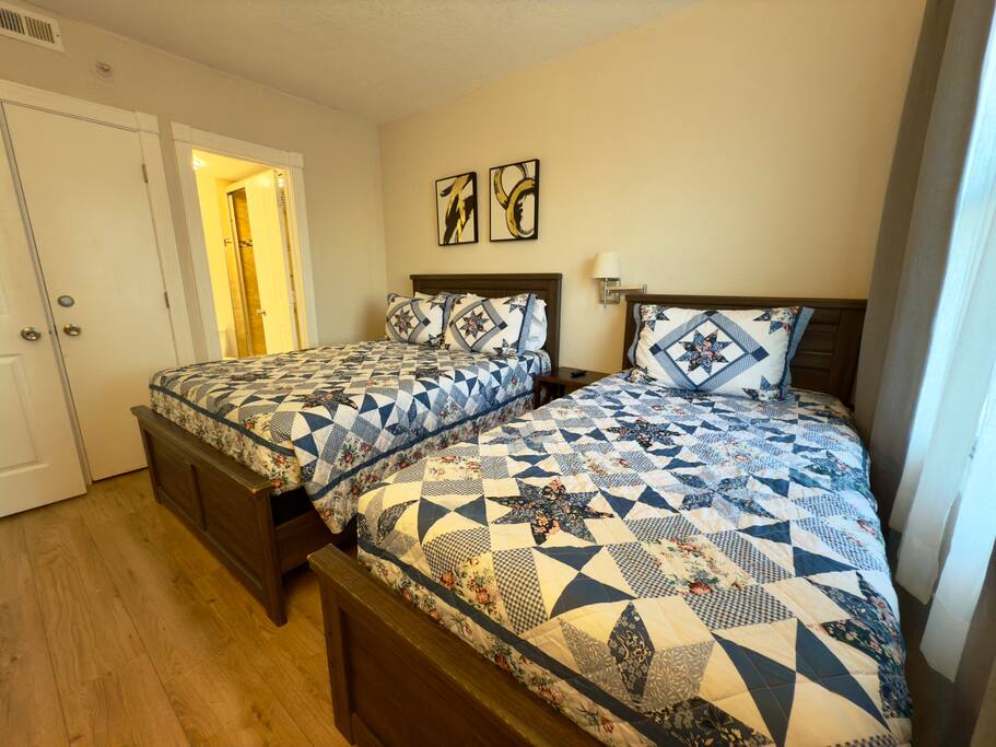 This comfortable apartment features 2 bedrooms and 2 full bathrooms, offering the ideal setup for families, couples, or friends. The master bedroom includes a Queen-size bed and a private ensuite bathroom with a refreshing shower. The second bedroom offers one Full-size bed and one Twin-size bed, perfect for flexible sleeping arrangements, and has its own bathroom with a shower/tub combo — great for relaxing after a day at the parks. Both bedrooms include Smarts TVs with Cable TV. The fully equipped kitchen includes a two-burner cooktop (no oven), microwave, refrigerator, toaster, blender, and all the cookware, utensils, and dishware you need to prepare meals comfortably during your stay. For added convenience, washer and dryer facilities are located on the 3rd and 4th floors of the same building. Each laundry cycle costs $2.50. You’ll also enjoy free parking right outside the building, plus access to ice machines and vending machines available in every tower. This apartment offers everything you need for a practical, relaxing, and memorable stay in Orlando!