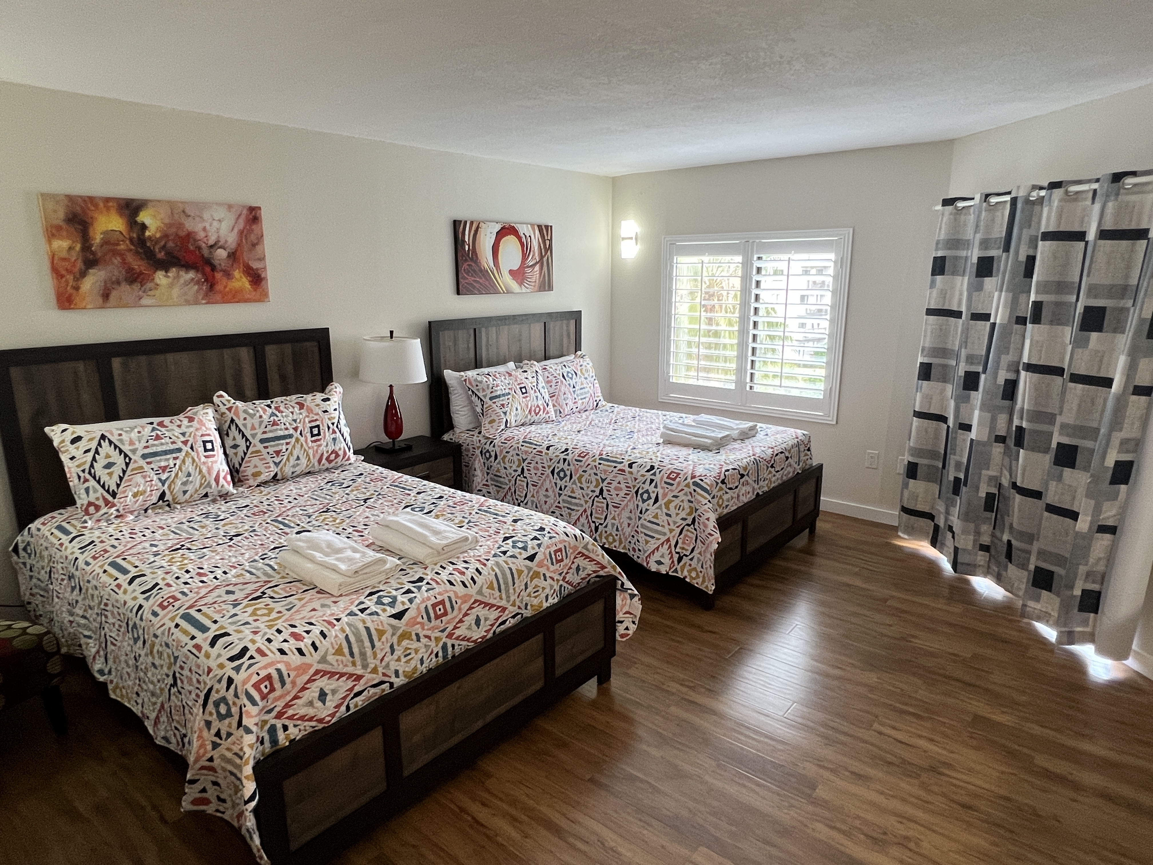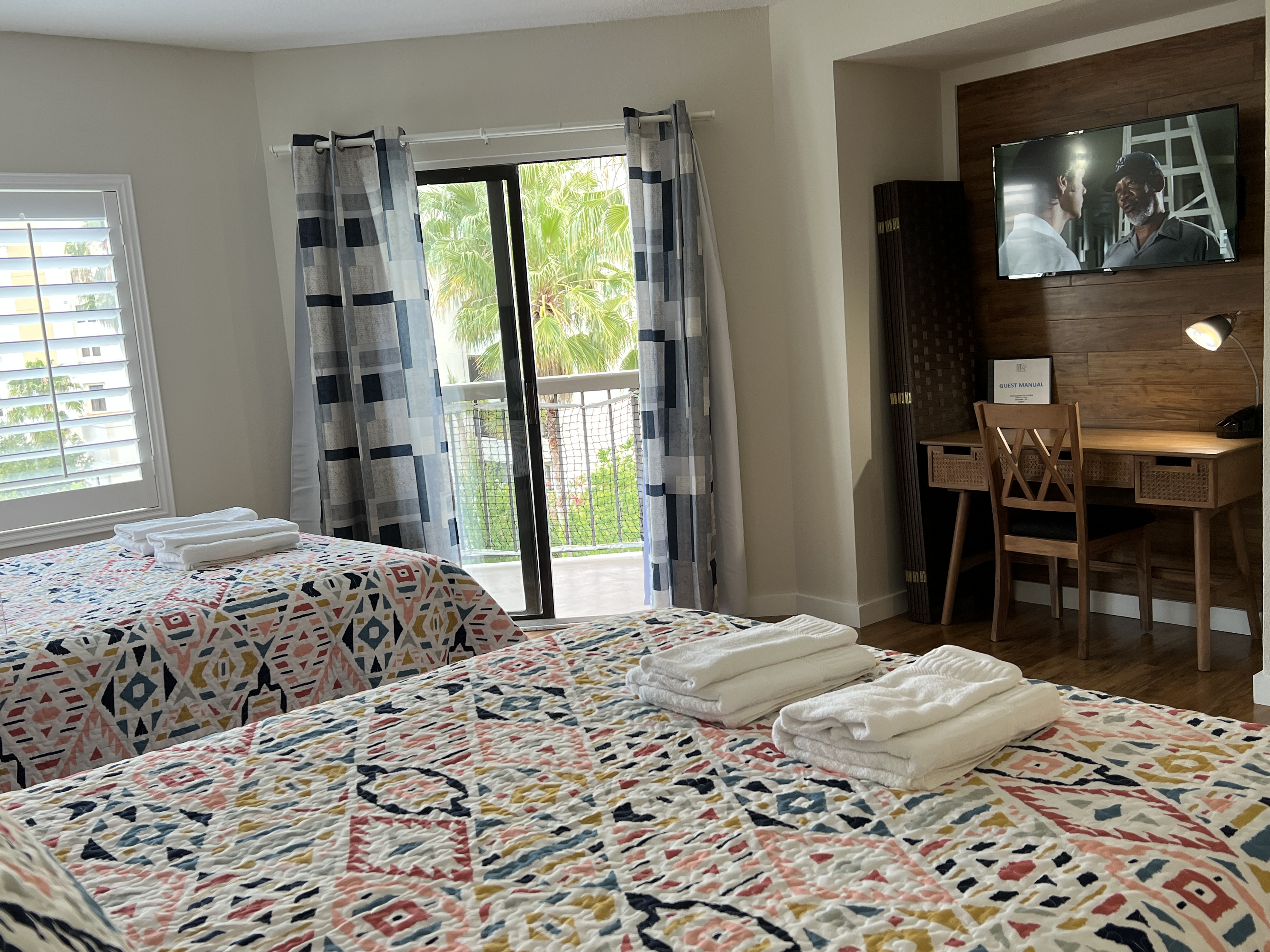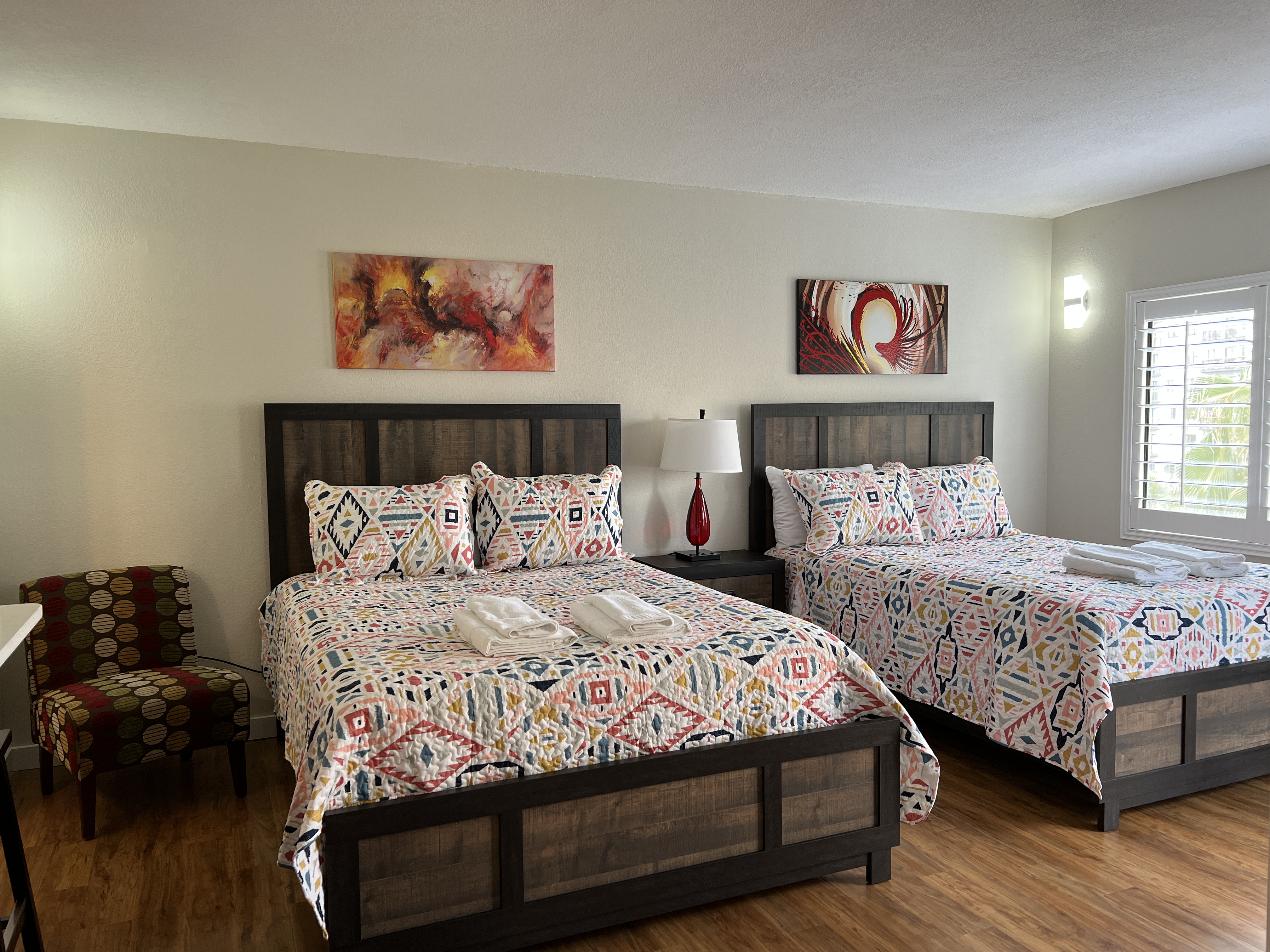 Welcome to your cozy and functional retreat! This charming apartment is perfect for families, friends, or couples seeking comfort and convenience during their stay. 🏡 The Space: The studio features 2 Queen Beds, offering comfortable sleeping spaces for your stay. * Bathroom: One bathroom with all the essentials. 🍳 Fully Equipped Kitchen: Whip up your favorite meals with all the essentials, including a microwave, refrigerator, toaster, blender, and all necessary utensils. Please note: spices, oil, and seasoning are not provided. 🧺 Laundry Convenience: Washers and dryers are available on the 3rd and 4th floors of the building for just $2.50 per cycle. 🚗 Free Parking: Enjoy the convenience of free parking right outside the building. 📶 Wi-Fi & Extra Amenities: Stay connected with condominium-provided Wi-Fi, and take advantage of ice machines and vending machines located in every building within the complex. 🛋️ Why Choose This Space? Nestled in a peaceful and well-equipped community, this apartment strikes the perfect balance between comfort, functionality, and affordability. Whether you're unwinding after a day of adventure or enjoying a home-cooked meal, you'll find everything you need right here. Book your stay now and turn your trip into an unforgettable experience! 🌟