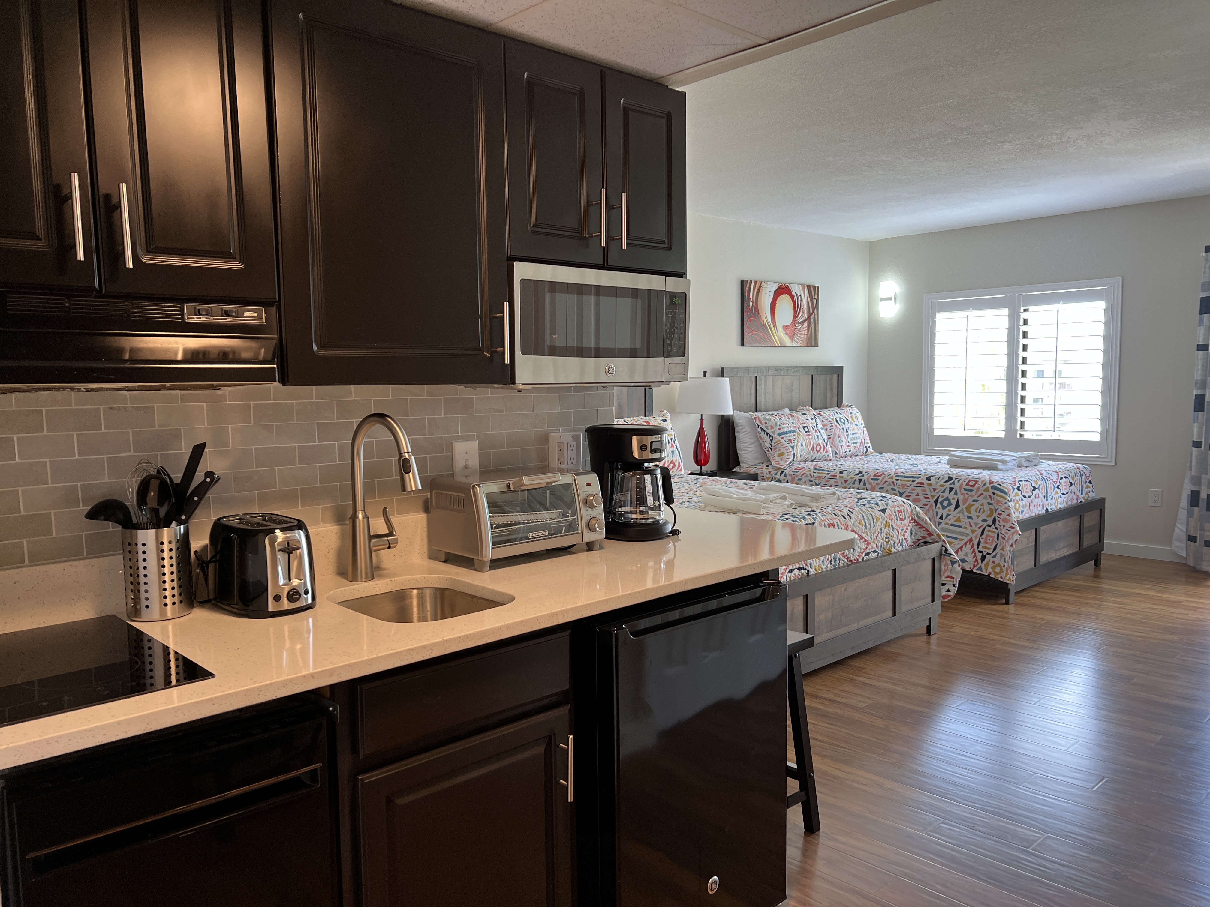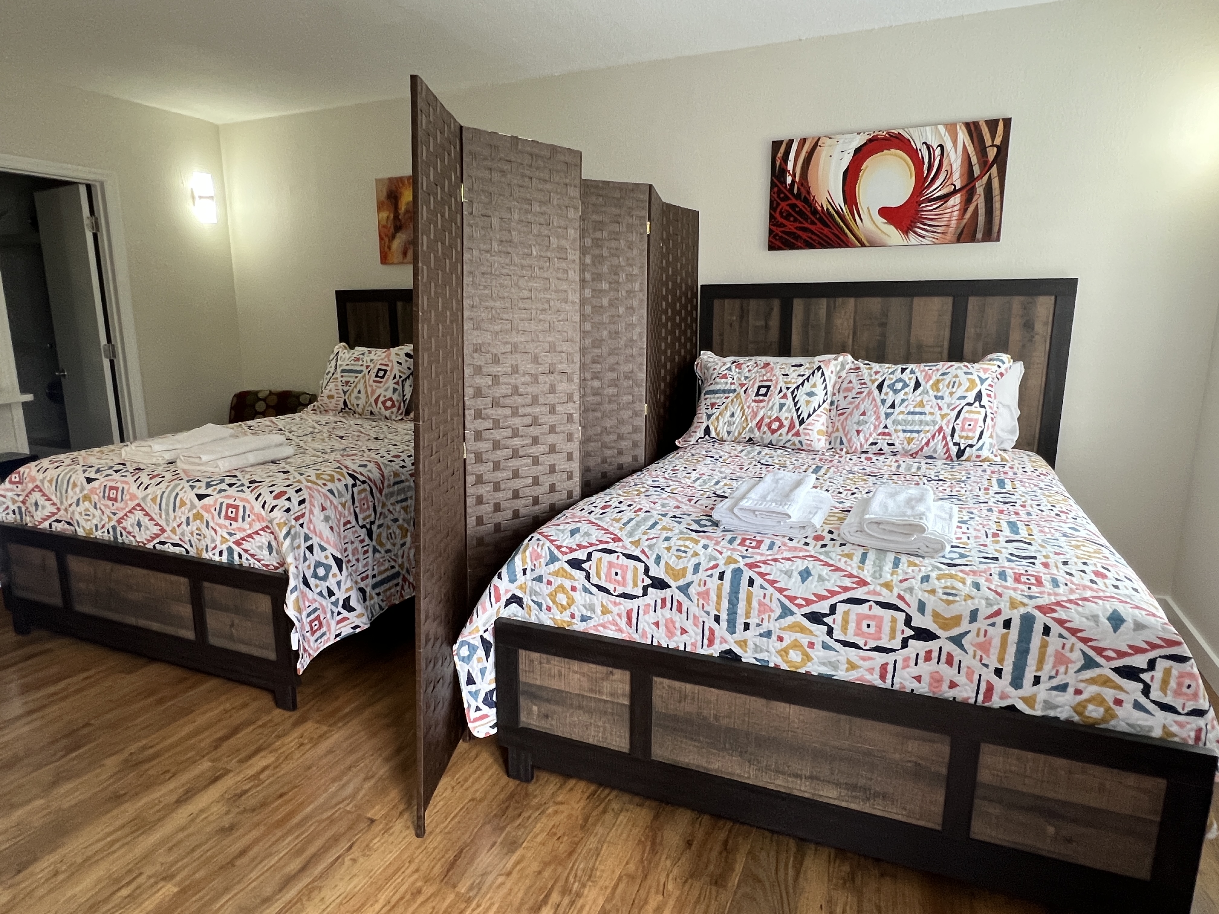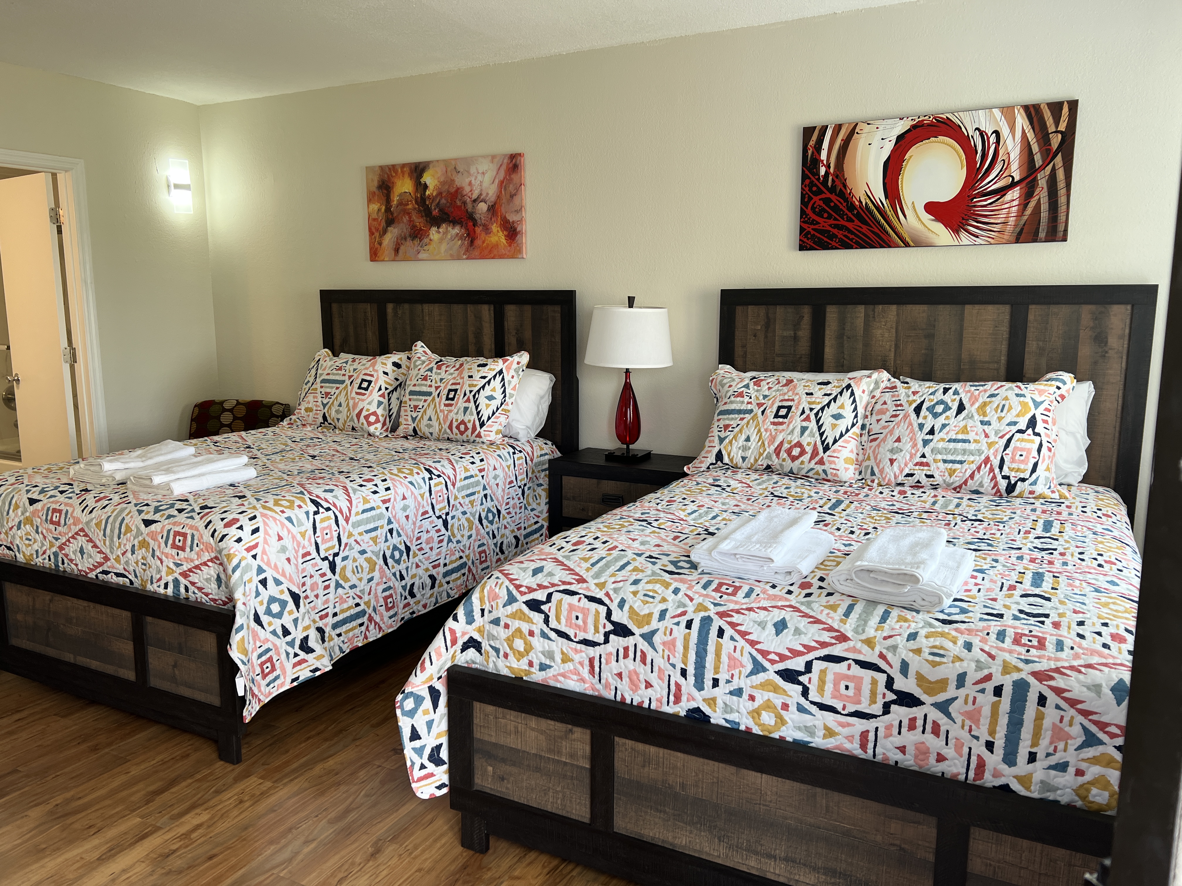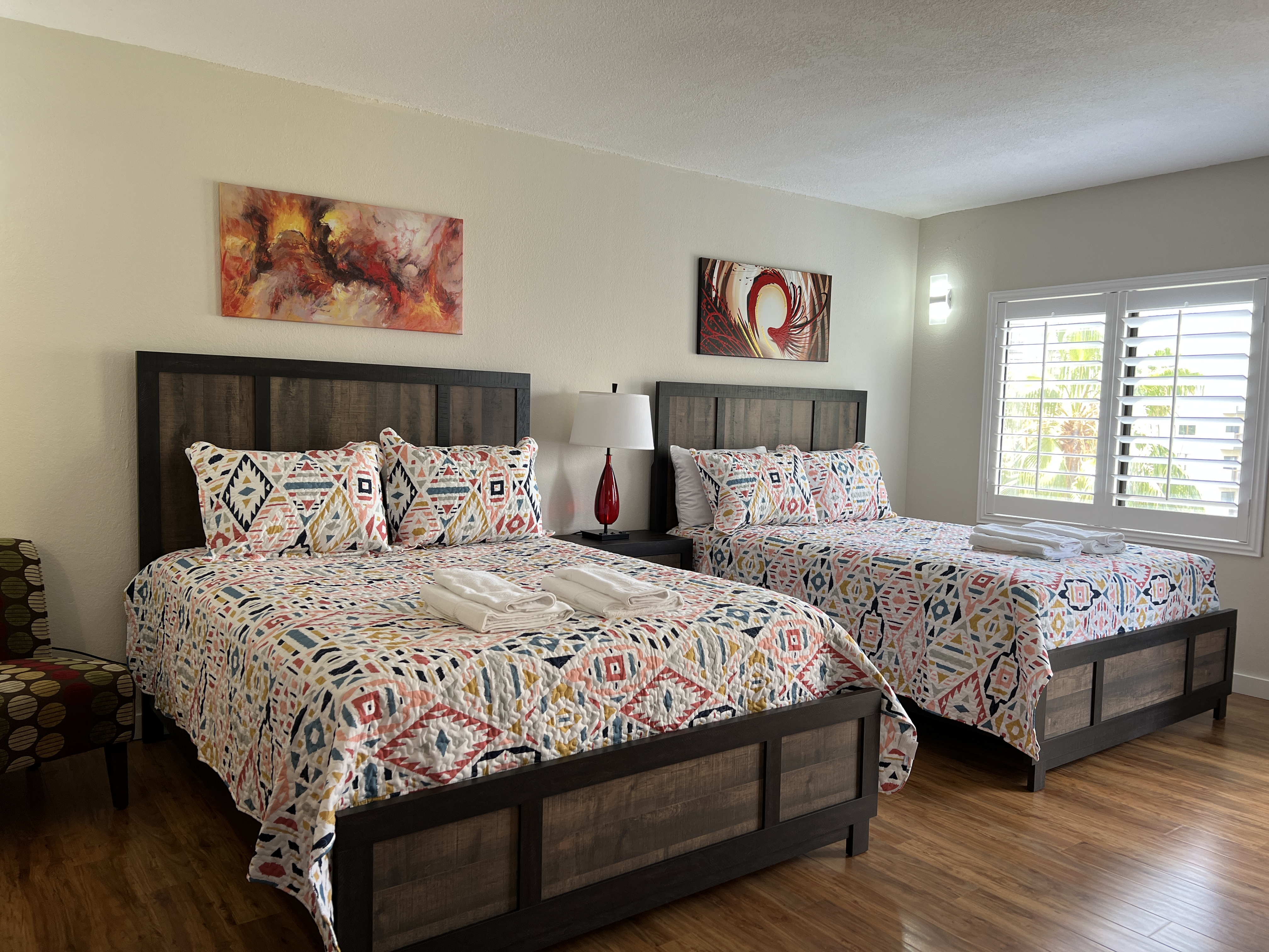 Welcome to your cozy and functional retreat! This charming apartment is perfect for families, friends, or couples seeking comfort and convenience during their stay. 🏡 The Space: The studio features 2 Queen Beds, offering comfortable sleeping spaces for your stay. * Bathroom: One bathroom with all the essentials. 🍳 Fully Equipped Kitchen: Whip up your favorite meals with all the essentials, including a microwave, refrigerator, toaster, blender, and all necessary utensils. Please note: spices, oil, and seasoning are not provided. 🧺 Laundry Convenience: Washers and dryers are available on the 3rd and 4th floors of the building for just $2.50 per cycle. 🚗 Free Parking: Enjoy the convenience of free parking right outside the building. 📶 Wi-Fi & Extra Amenities: Stay connected with condominium-provided Wi-Fi, and take advantage of ice machines and vending machines located in every building within the complex. 🛋️ Why Choose This Space? Nestled in a peaceful and well-equipped community, this apartment strikes the perfect balance between comfort, functionality, and affordability. Whether you're unwinding after a day of adventure or enjoying a home-cooked meal, you'll find everything you need right here. Book your stay now and turn your trip into an unforgettable experience! 🌟