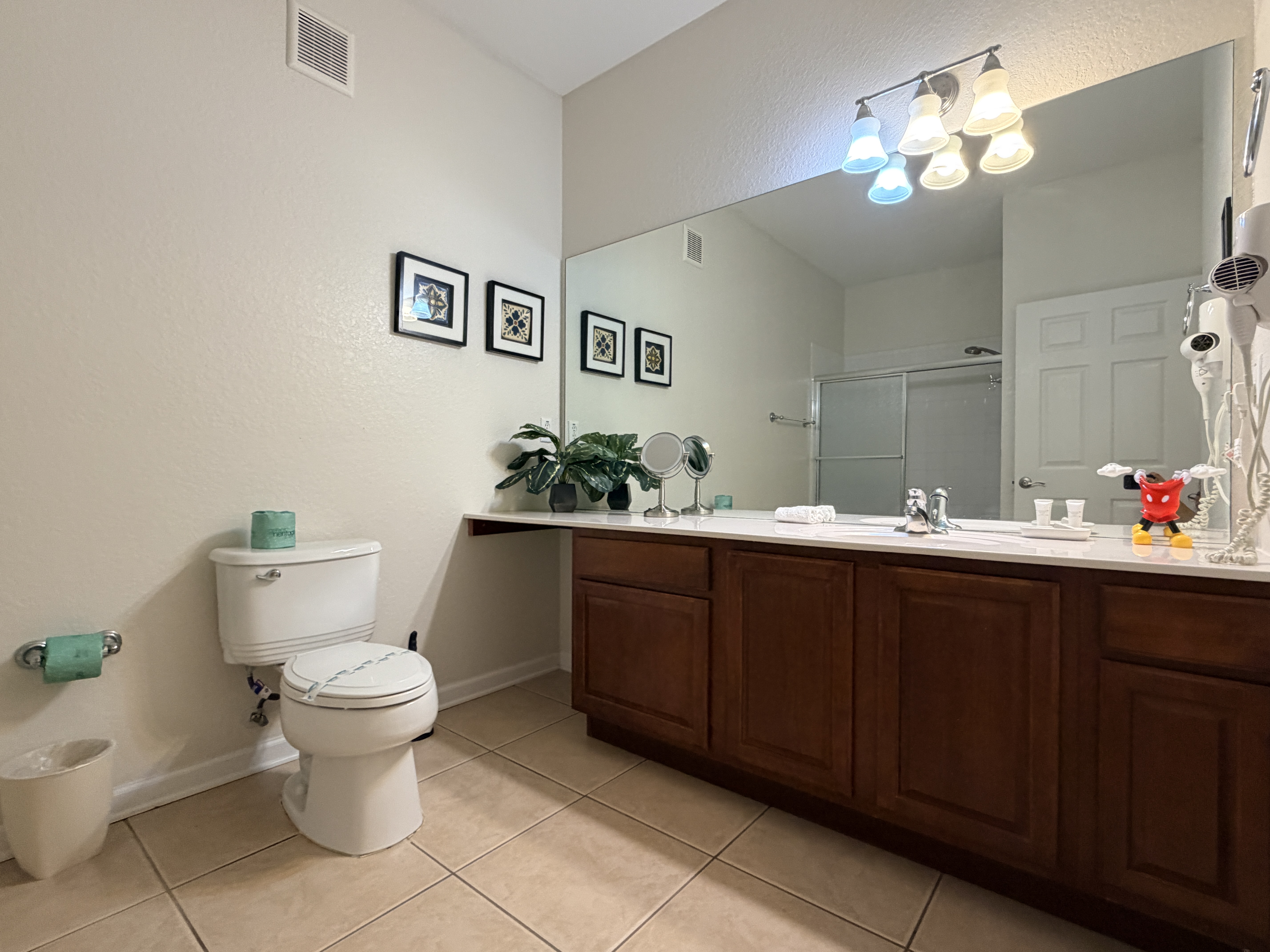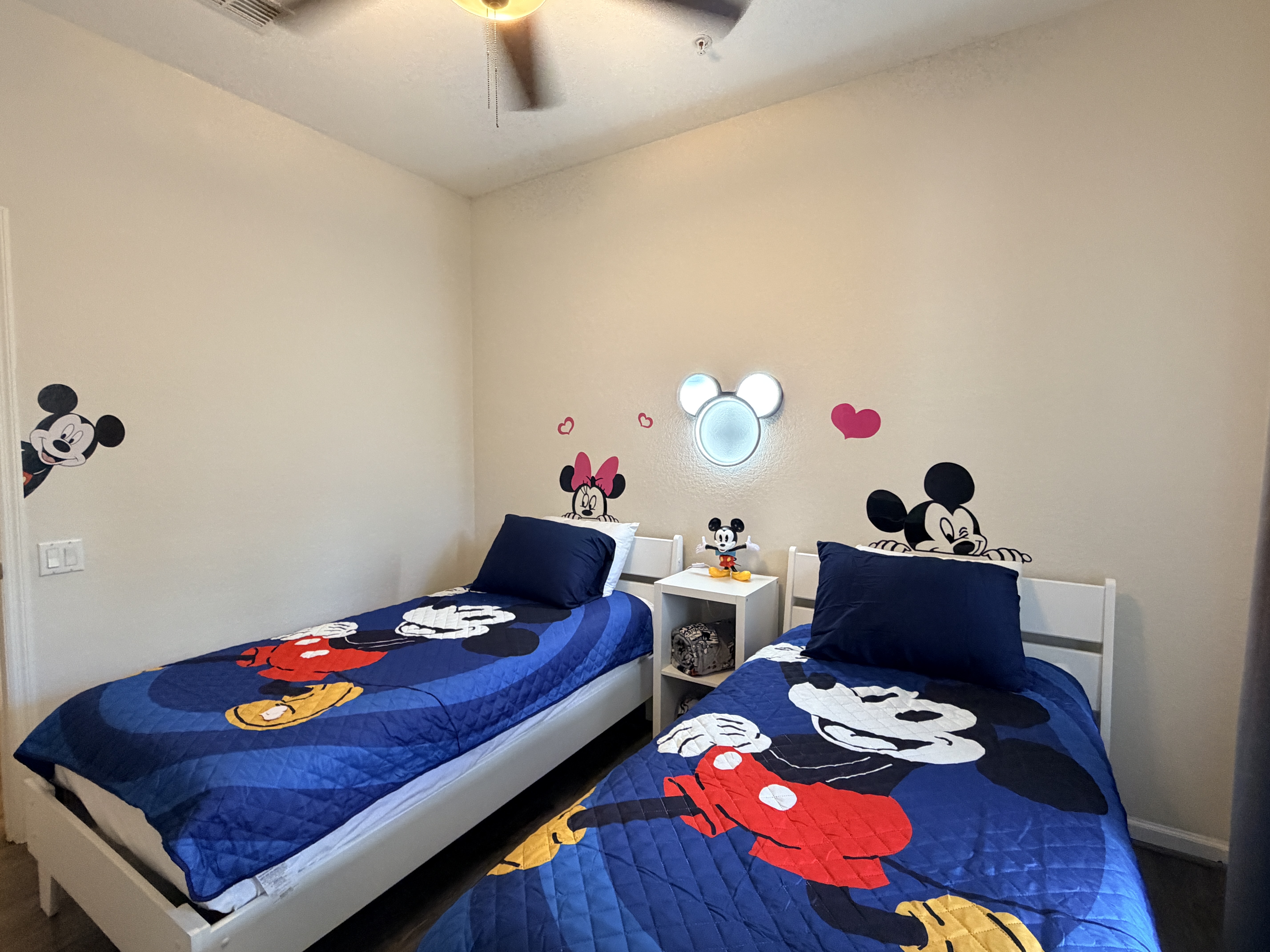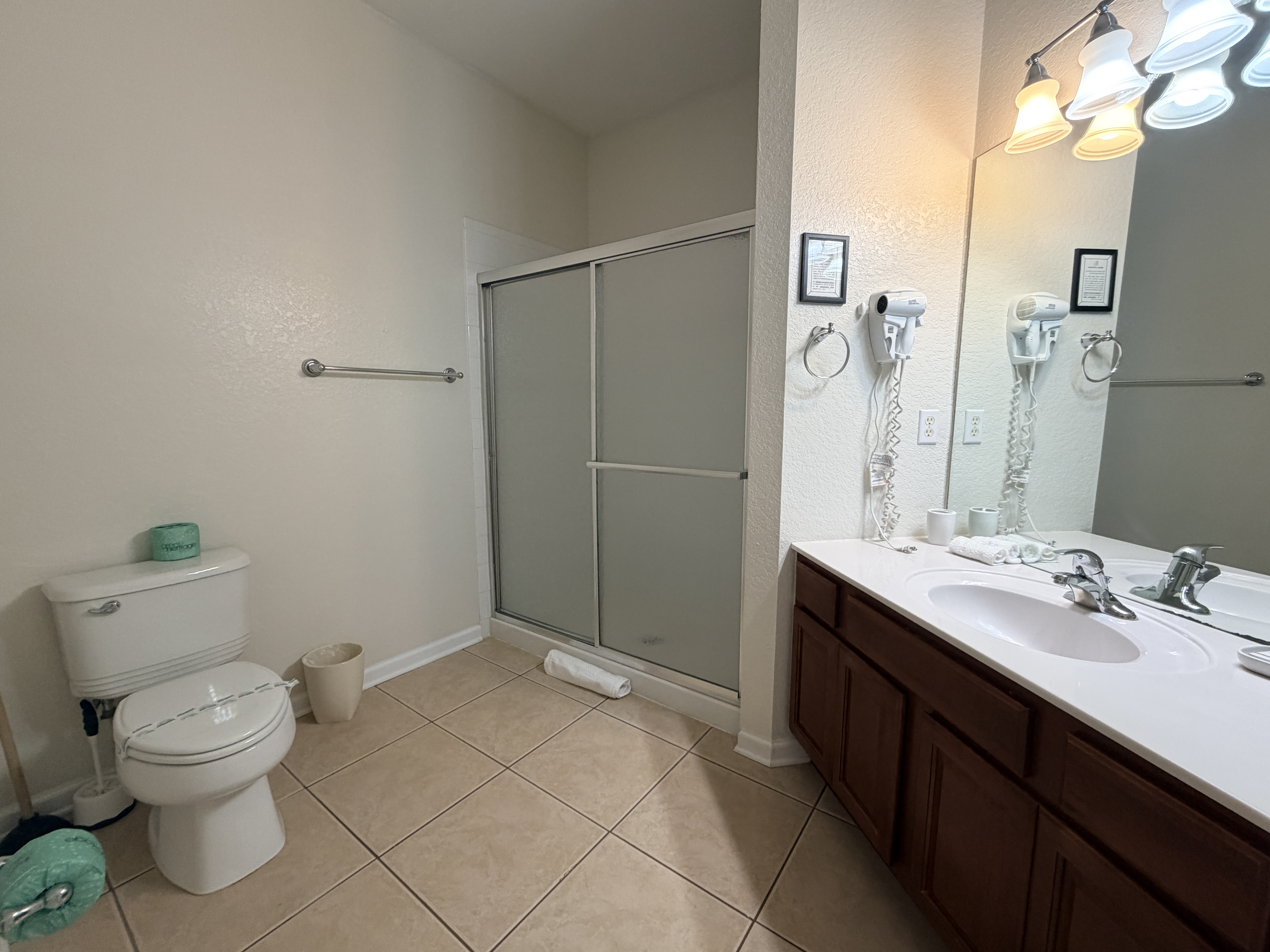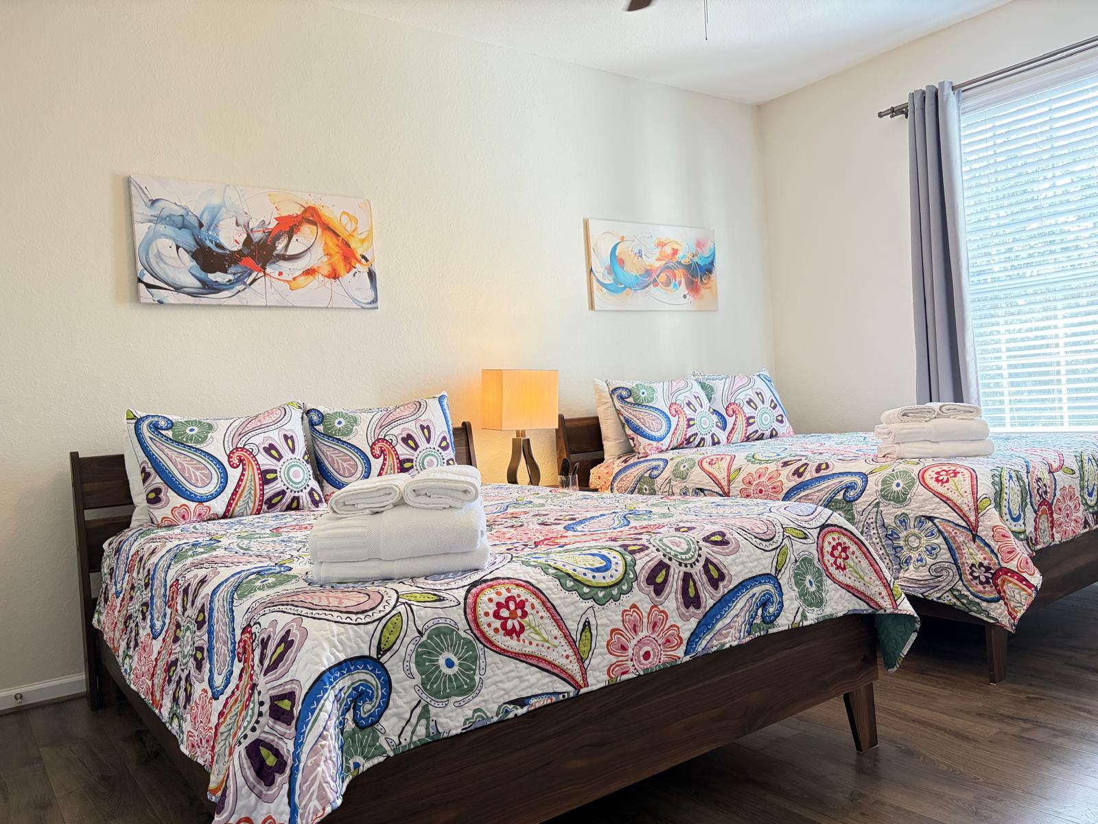 This comfortable apartment features 2 bedrooms and 2 full bathrooms, offering the ideal setup for families, couples, or friends. The master bedroom includes a Queen-size bed and a private ensuite bathroom with a refreshing shower. The second bedroom offers one Full-size bed and one Twin-size bed, perfect for flexible sleeping arrangements, and has its own bathroom with a shower/tub combo — great for relaxing after a day at the parks. Both bedrooms include Smarts TVs with Cable TV. The fully equipped kitchen includes a two-burner cooktop (no oven), microwave, refrigerator, toaster, blender, and all the cookware, utensils, and dishware you need to prepare meals comfortably during your stay. For added convenience, washer and dryer facilities are located on the 3rd and 4th floors of the same building. Each laundry cycle costs $2.50. You’ll also enjoy free parking right outside the building, plus access to ice machines and vending machines available in every tower. This apartment offers everything you need for a practical, relaxing, and memorable stay in Orlando!