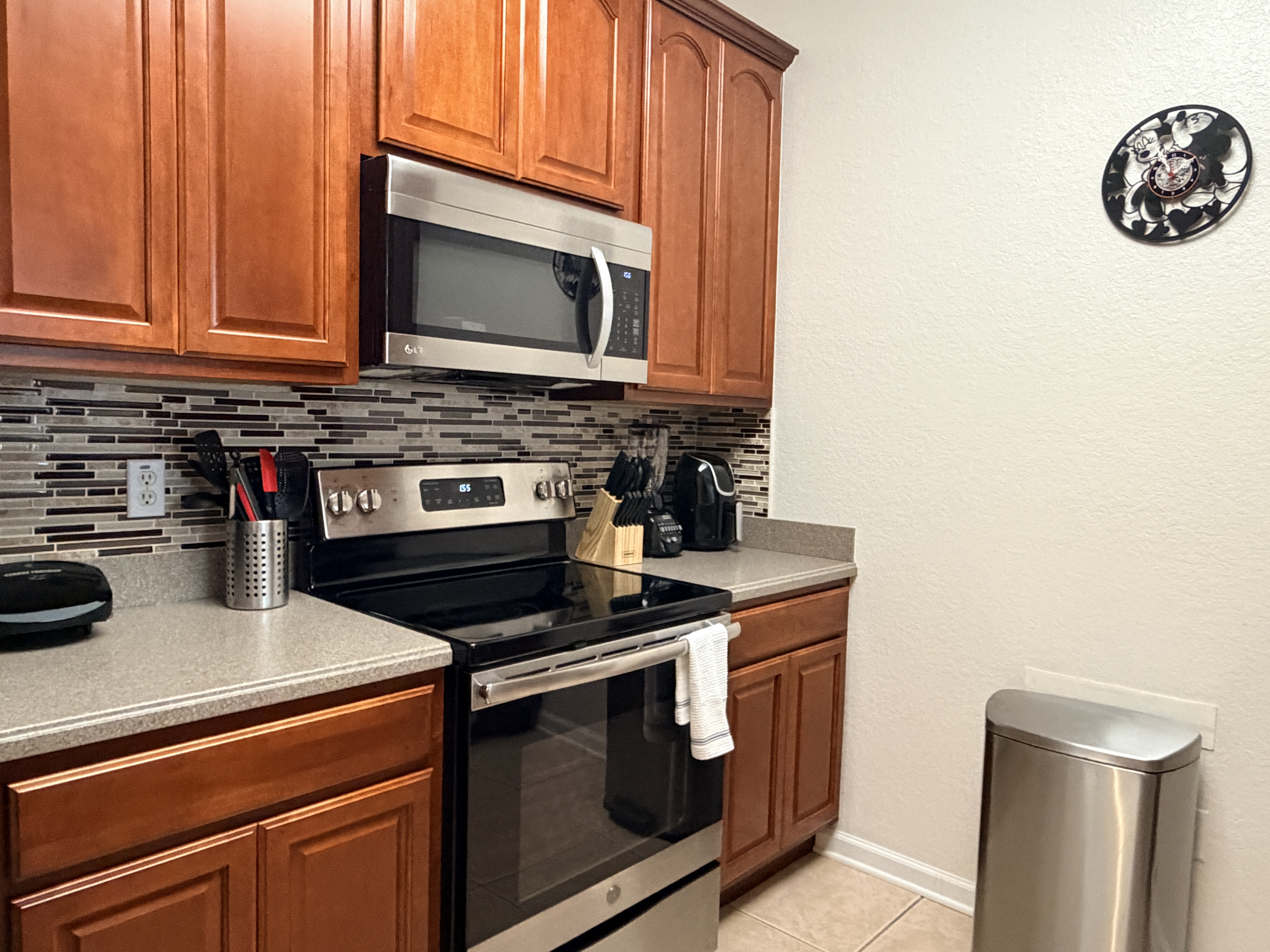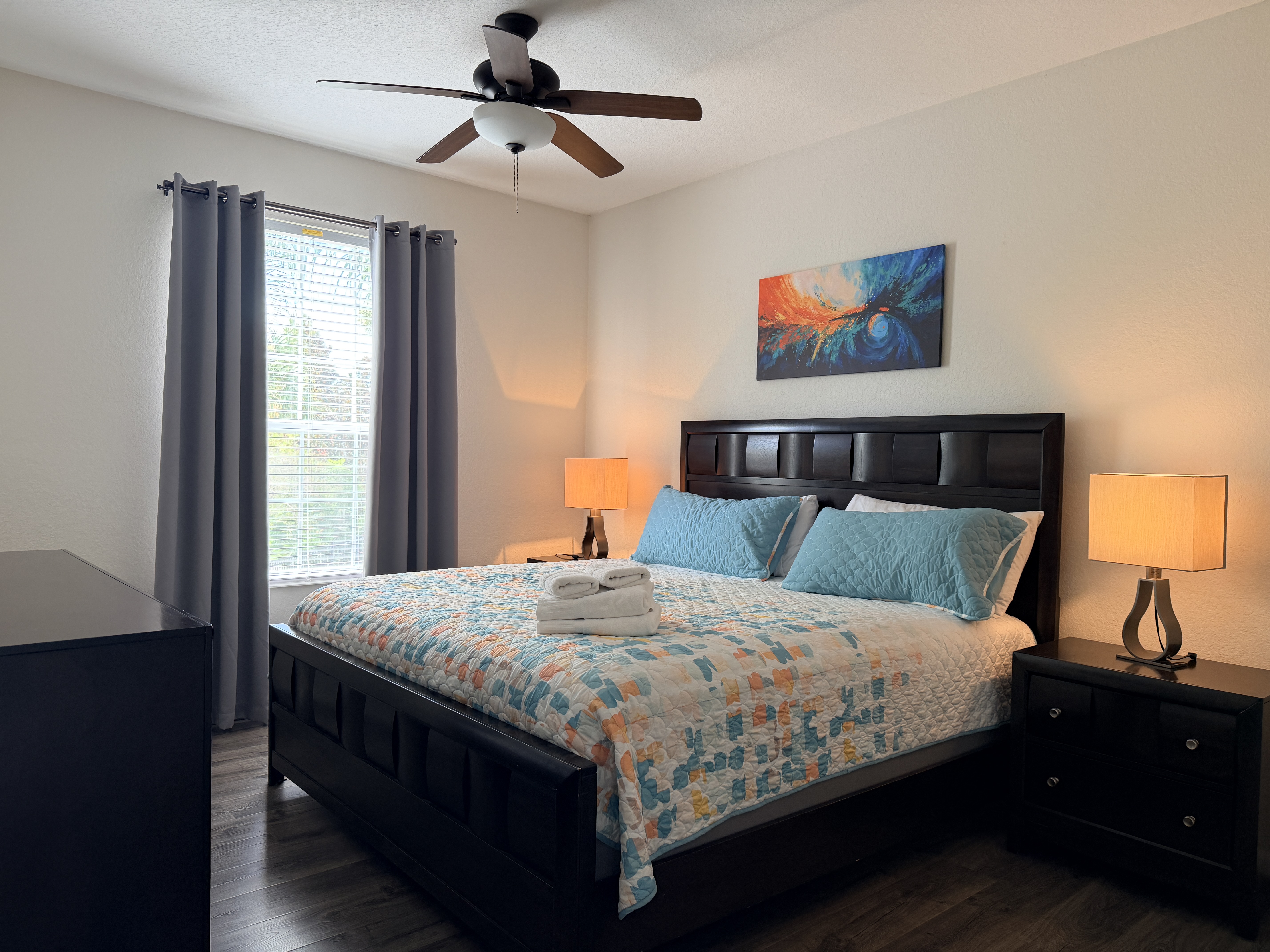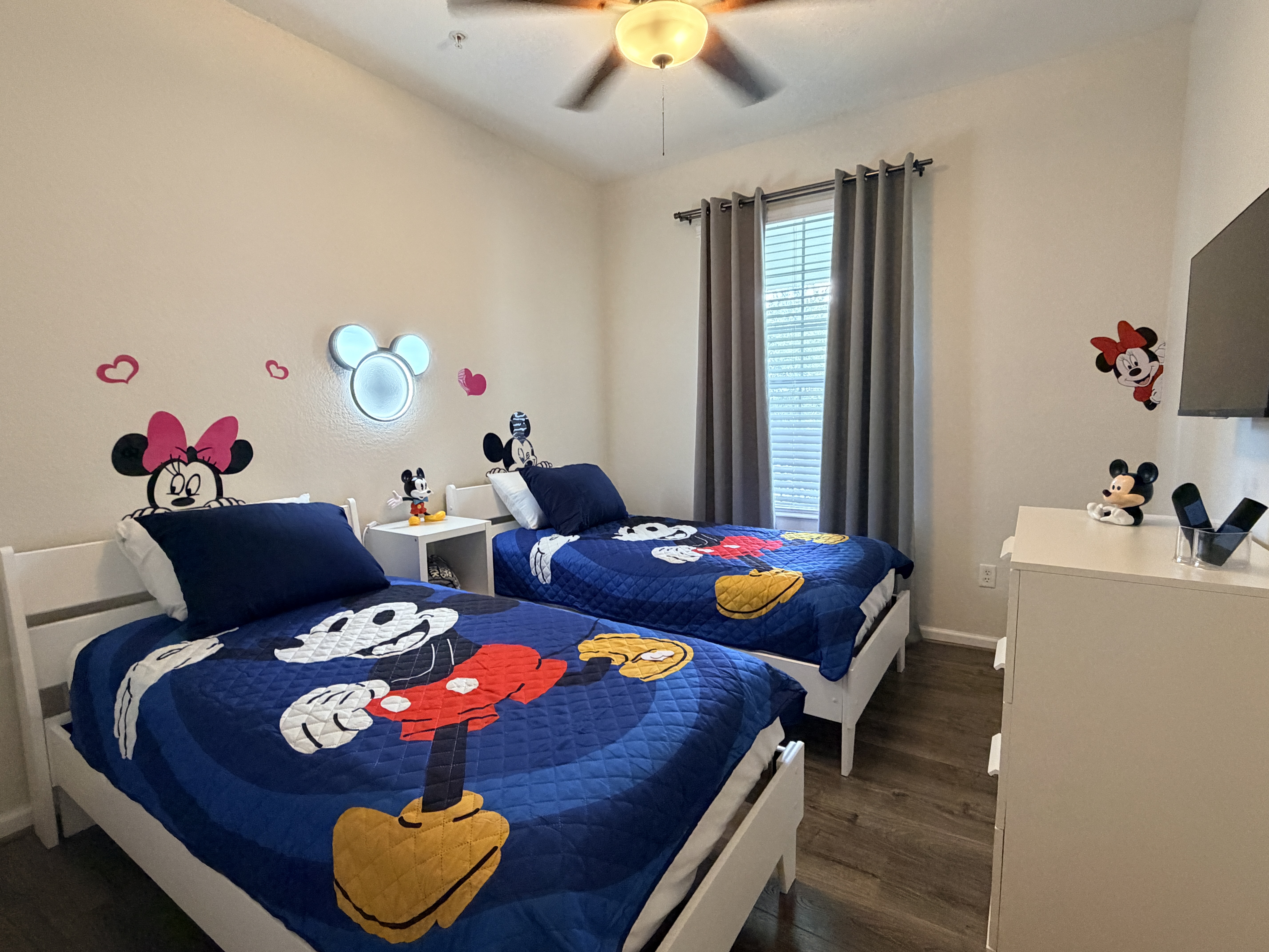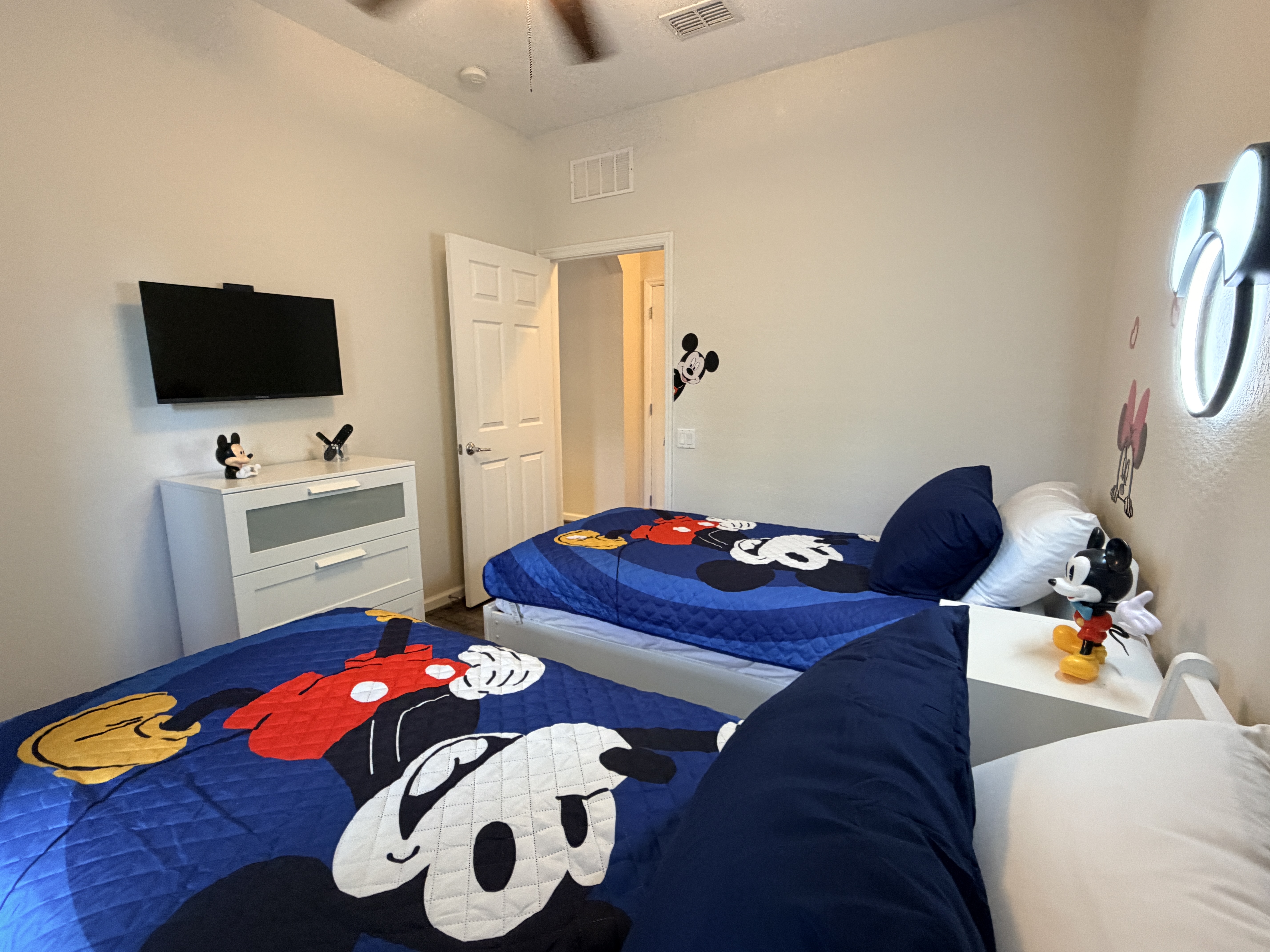 This comfortable apartment features 2 bedrooms and 2 full bathrooms, offering the ideal setup for families, couples, or friends. The master bedroom includes a Queen-size bed and a private ensuite bathroom with a refreshing shower. The second bedroom offers one Full-size bed and one Twin-size bed, perfect for flexible sleeping arrangements, and has its own bathroom with a shower/tub combo — great for relaxing after a day at the parks. Both bedrooms include Smarts TVs with Cable TV. The fully equipped kitchen includes a two-burner cooktop (no oven), microwave, refrigerator, toaster, blender, and all the cookware, utensils, and dishware you need to prepare meals comfortably during your stay. For added convenience, washer and dryer facilities are located on the 3rd and 4th floors of the same building. Each laundry cycle costs $2.50. You’ll also enjoy free parking right outside the building, plus access to ice machines and vending machines available in every tower. This apartment offers everything you need for a practical, relaxing, and memorable stay in Orlando!